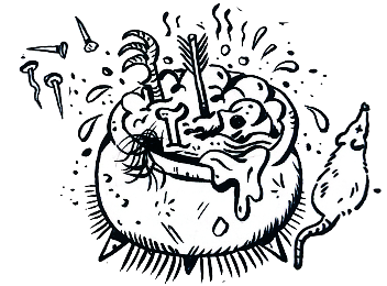 È un papero con il culo al posto della testa, o la testa nel culo, a vostra discrezione; un gilet di pelle, anfibi e guanti sono il suo abbigliamento.